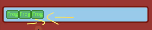 - 첫 번째 .frog 요소는 margin-left: auto;로 인해 오른쪽으로 정렬됩니다.->늘어난 가용공간 높이만큼 늘어남