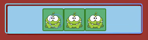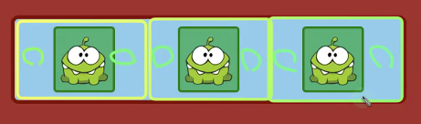 이렇게 함으로써 .playground 내에서 각 .frog 요소가 가로축을 따라 정렬됩니다. 첫 번째 요소는 오른쪽 끝에, 두 번째 요소는 가운데에, 세 번째 요소는 왼쪽 끝에 배치됩니다.